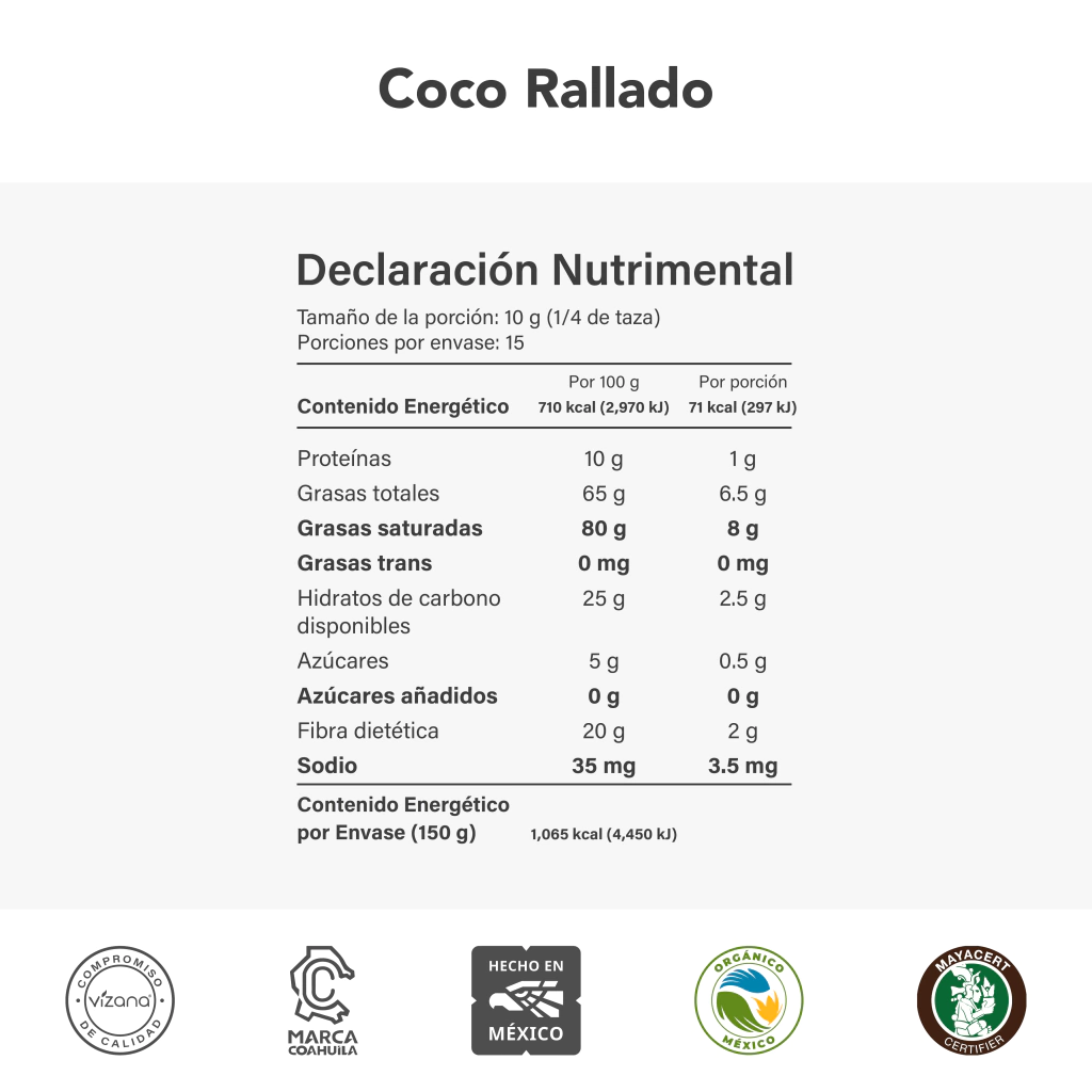 Ingredientes: 100% coco deshidratado rallado orgánico.